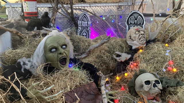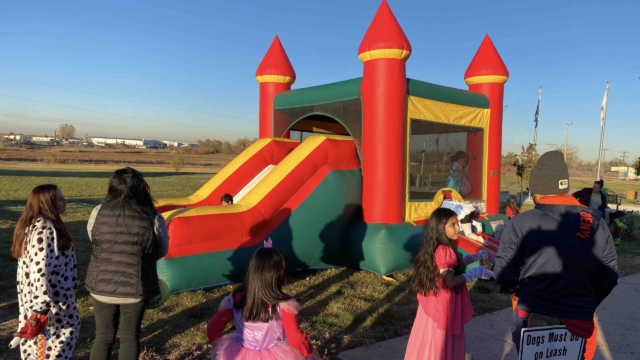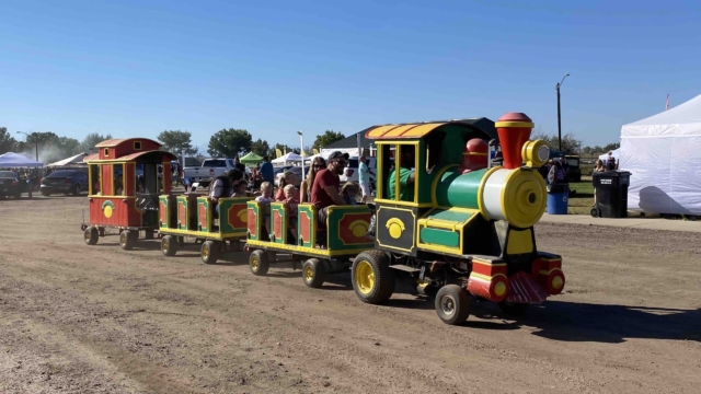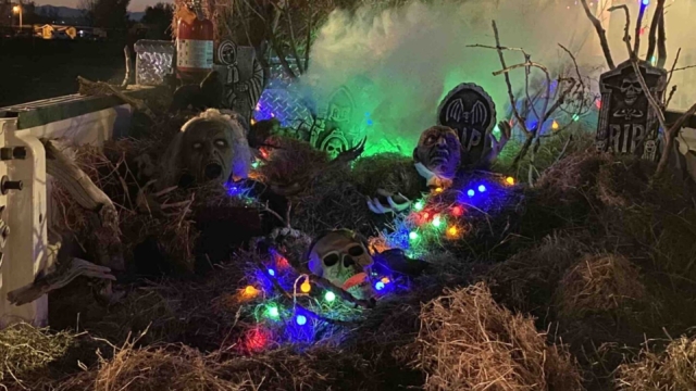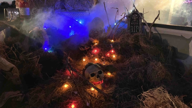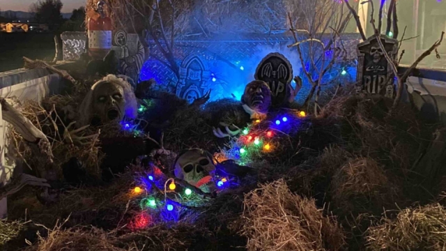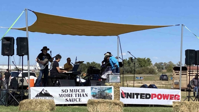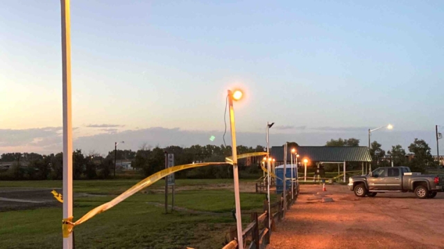 As the Culture and Relations Manager for the Town of Hudson, Colorado, part of my job is to plan and produce all Town events. In a small town, you don’t always have all the resources one might want, so you improvise. In Hudson’s Memorial Park, there was almost light at night. To have the Harvest Festival and Trunk or Treat this year, I needed light. The solution was to wire the park with nearly 700 feet of heavy-duty extension cables. I then bought lights that can be controlled from a phone and placed them on 8-foot boards that I painted and screwed into the park fence, as seen in the shots below.